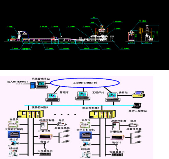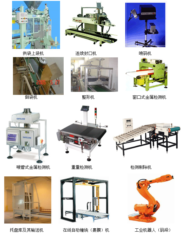 該系統包含了小袋包裝的自動上袋、稱重、輸送、封口、倒袋、噴碼、金屬檢測、重量檢測、碼垛,大袋稱重包裝及其集散控制系統、信息管理系統。