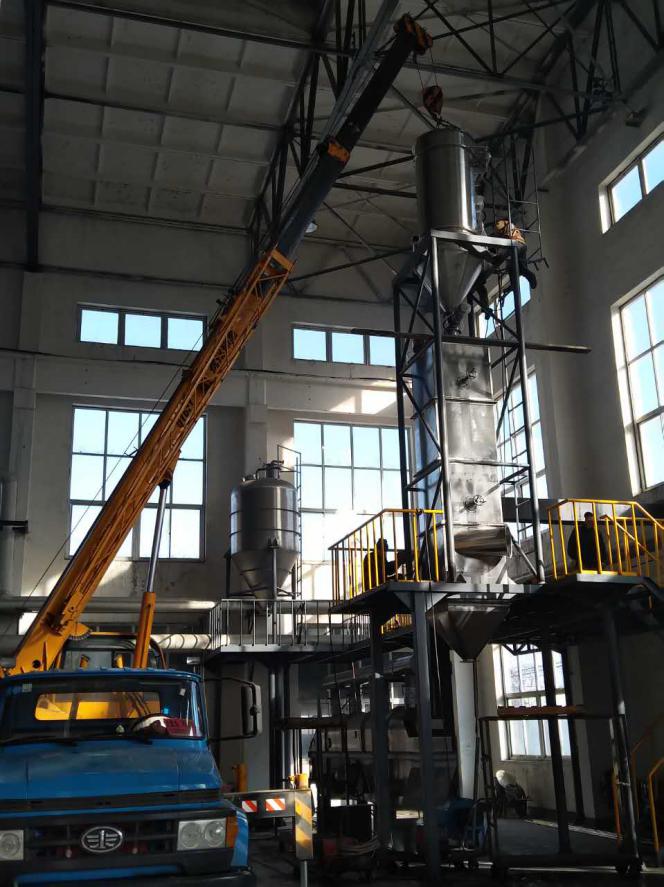 采用正壓氣力輸送將物料由雙錐干燥機(jī)送至冷卻降溫倉,冷卻料倉由風(fēng)機(jī)在切線方向向內(nèi)鼓風(fēng),輔助物料熱風(fēng)交換,料倉內(nèi)部采用網(wǎng)板折流結(jié)構(gòu),最大限度延長物料在料倉內(nèi)的折流時間,使每一粒可以充分完成熱交換。從而達(dá)到降溫目的。考慮到用戶生產(chǎn)地處東北,季節(jié)性溫差較大,顧鼓風(fēng)機(jī)采用變頻調(diào)節(jié)風(fēng)量,提高其使用效率。